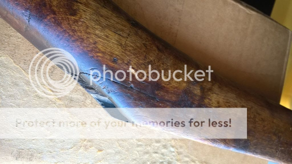 My main concern is the stock is cracked at the wrist. It does appear there is some sort of repair on the right side. I see some old looking glue/resin at the crack and there is what appears to be a brass pin used on the right side as well.